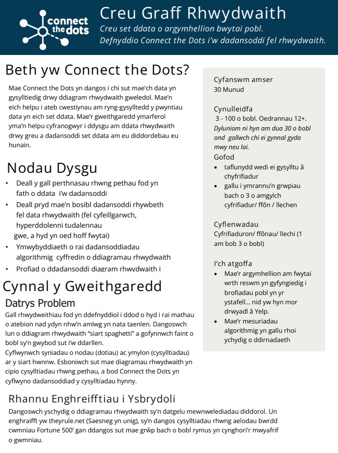 Mae ConnectTheDots yn dangos i chi sut mae'ch data yn gysylltiedig drwy ei ddadansoddi fel rhwydwaith.